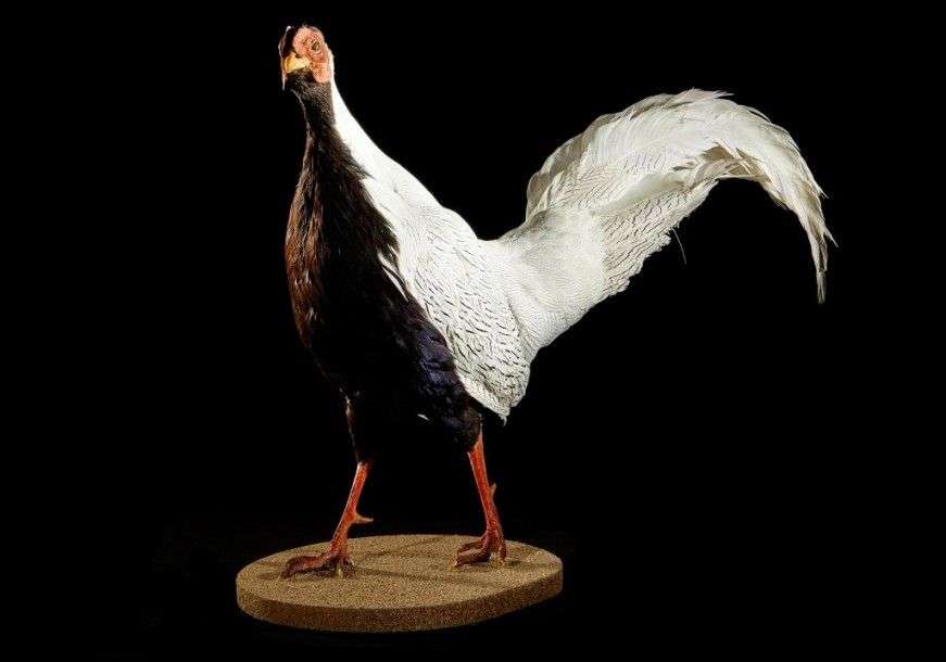 Faisan argenté (Lophura nycthemera) (D) : spécimen naturalisé sur plateau