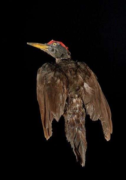 Pic noir (Dryocopus martius) (CE) : spécimen mâle naturalisé ailes écartée