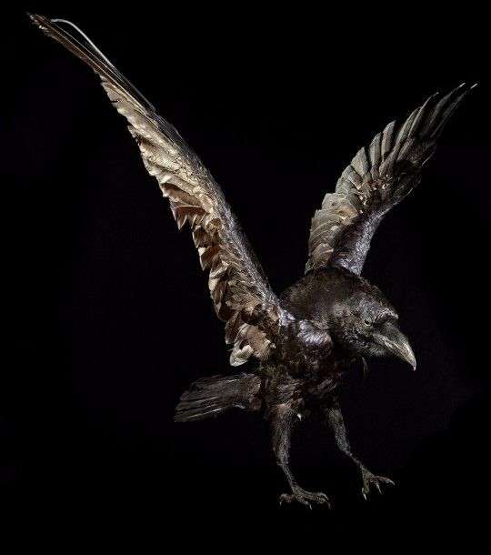 Grand corbeau (Corvus corax) (CE) : spécimen naturalisé en vol sans socle