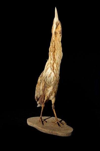 Butor étoilé (Botaurus stellaris) (CE) : spécimen naturalisé sur socle sablé