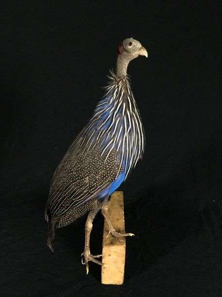 Pintade vulturine (Acryllium vulturinum) (NR) : spécimen ancien avec beaux coloris naturalisé sans socle