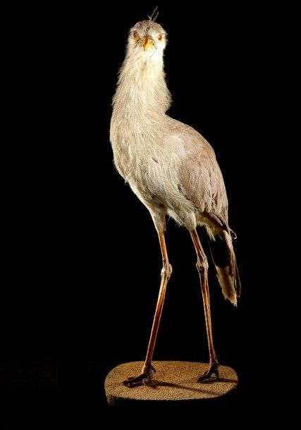 Cariama huppé (Cariama cristata) (II/B) : spécimen ancien naturalisé sur p