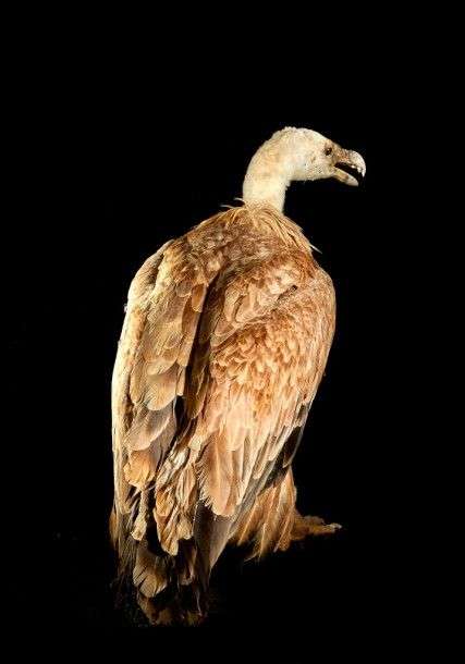 Vautour fauve (Gyps fulvus) (II/A) : spécimen ancien naturalisé en attitude de marche sans socle, espèce peu commune idéal cabinet de curiosités