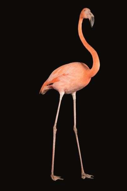 Flamant des caraïbes ou Flamant rouge (Phoenicopterus ruber) ou (Phonicopterus roseus) (II/A) : magnifique spécimen avec colori bien prononcé naturalisé sans socle