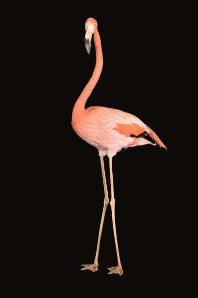 Flamant des caraïbes ou Flamant rouge (Phoenicopterus ruber) ou (Phonicopterus roseus) (II/A) : magnifique spécimen avec colori bien prononcé naturalisé sur socle