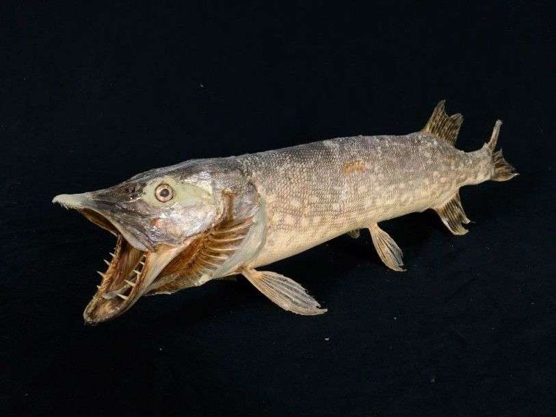 Brochet (Esox lucius) (P) : spécimen naturalisé gueule ouverte