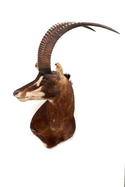 Hippotrague noir (Hippotragus niger) (CH) : tête en cape avec belle envergure et configuration du trophée, en l’état
