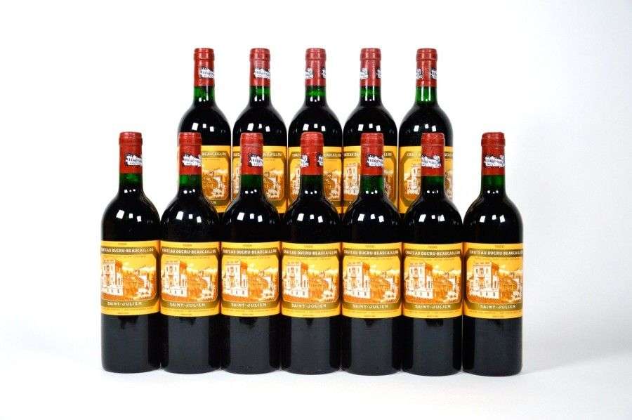 12 B CHÂTEAU DUCRU BEAUCAILLOU (Caisse Bois) 1 B.G| quelques étiquettes légèrement plissées. GCC2 St Julien 1986