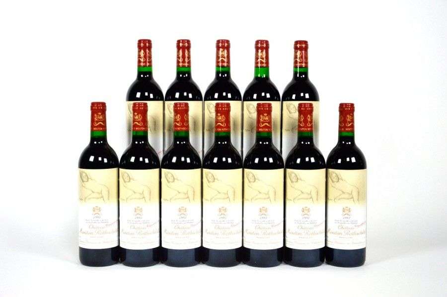 12 B CHÂTEAU MOUTON ROTHSCHILD (Caisse Bois) 1 B.G. sinon parfaites GCC1 P