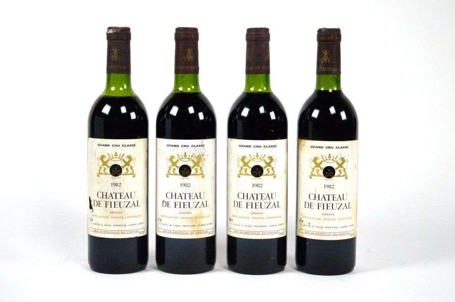 4 B CHÂTEAU DE FIEUZAL Rouge (1 B.G| 2 T.L.B.-| 1 H.E| 3 e.t. dont 1 e.a| 2 c.l.a.) CC Graves 1982