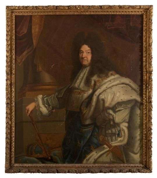 Ce portrait de Louis XIV (1643-1715) présenté dans les salles XVIIIe du Musée du Louvre constitue l'archétype du portrait royal.