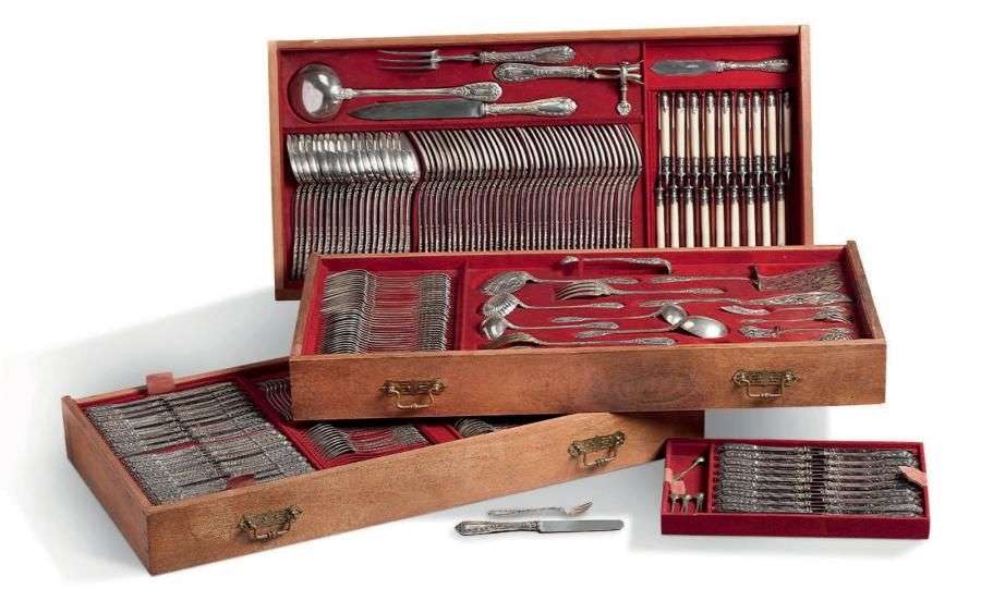 MÉNAGÈRE EN ARGENT rangée dans ses trois coffrets/tiroirs d'origine, compr
