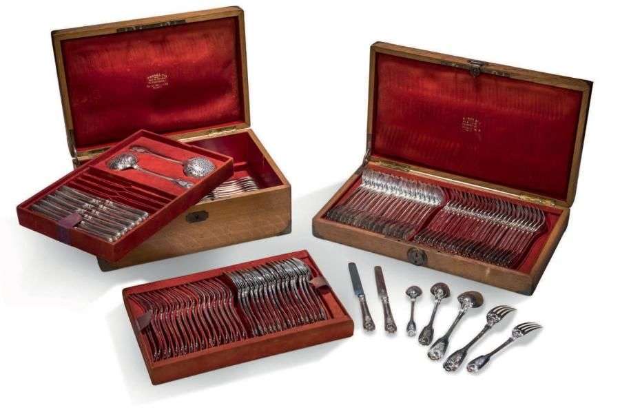 MÉNAGÈRE EN ARGENT armorié, modèle coquille comprenant: