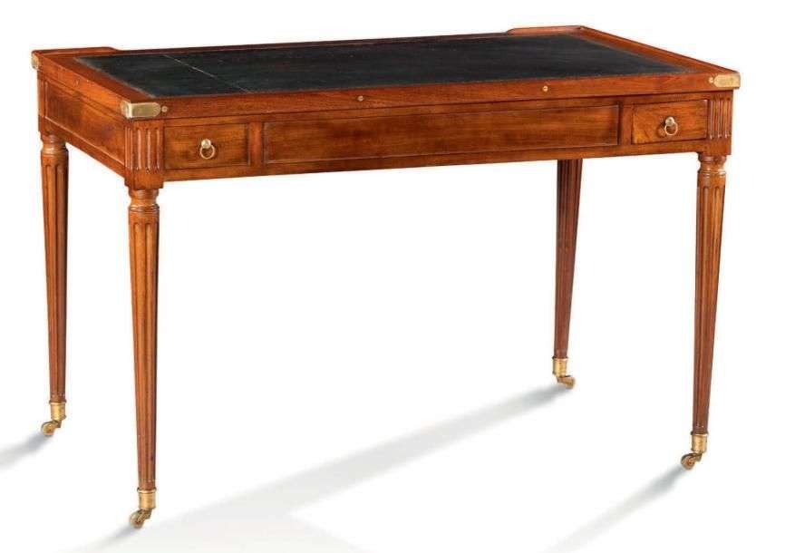 Deux tiroirs en ceinture. Pieds fuselés à cannelures.