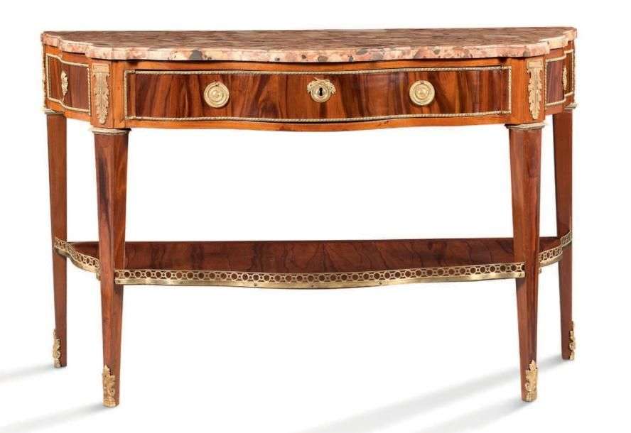 CONSOLE de forme mouvementée en placage de bois de rose et amarante.
