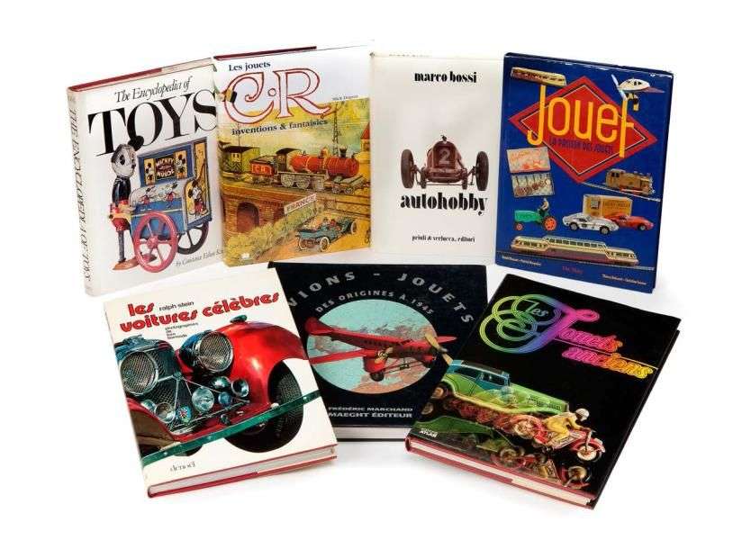 Les Jouets CR de M. Duprat - Encyclopedia of Toys de C. Eileen King - Avions - Jouets de F. Marchand - les Jouets Anciens Ed. Atlas - JOUEF, la Passion des Jouets - Auto Hobby de M. Bossi - les Voitures Célèbres de R. Stein.