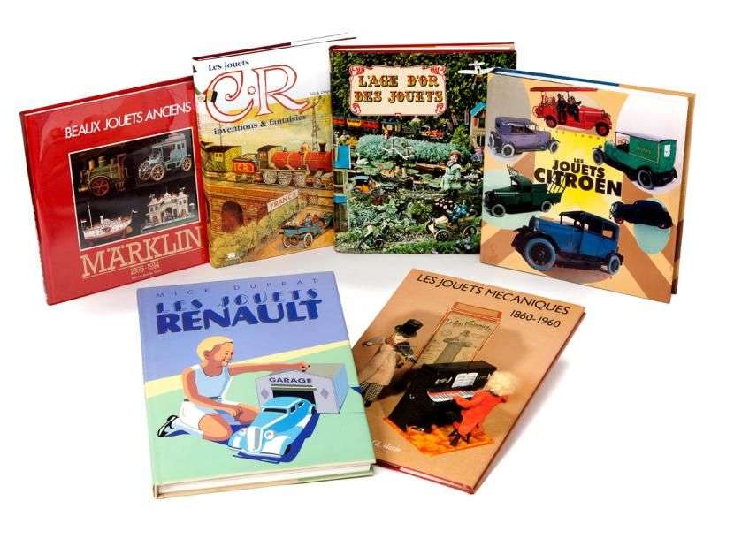 Les Jouets CITROEN de C. Lamming - les Jouets Mécaniques 1860-1960 de Ch. Massin- l'Age d'Or des Jouets de J. Remise et J. Fondin - Beaux Jouets Anciens MARKLIN 1895-1914 Ed. Hayot - Les Jouets CR de M. Duprat - Les Jouets RENAULT de M. Duprat.