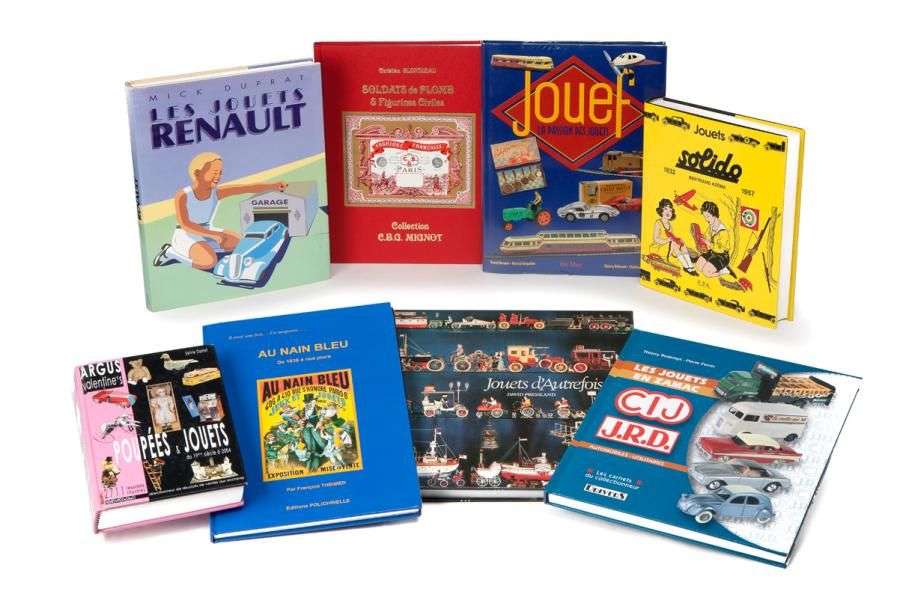 Les Jouets RENAULT de M. Duprat - Youpi c'est Jeudi de F. Bertin - CIJ-JRD de T. Redempt et P. Ferrer - JOUEF, la Passion des Jouets - Jouets d'Autrefois de D. Pressland - SOLIDO de B. Azema - Argus Valentine's Poupées et Jouets - Inestimables CORGI CIJ-JRD - BROOKLIN - MARKLIN - SPOT ON - TEKNO de S. Brochard - Au Nain Bleu de F. Theimer - Soldats de Plomb CBG de C. Blondieau.