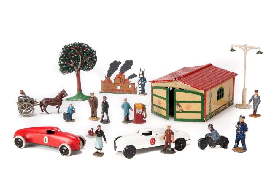 Double garage avec véhicules n° 808/1 - personnages et accessoires.