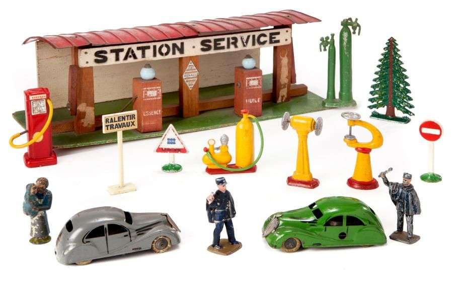 STATION-SERVICE RENAULT avec véhicule VIVA Grand Sport en tôle - agents de