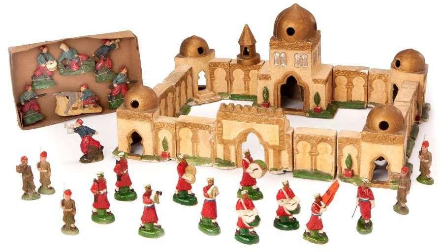 Divers composition dont JRD Palais du Sultan Marocain à construire avec Nouba et coloniaux au défilé.