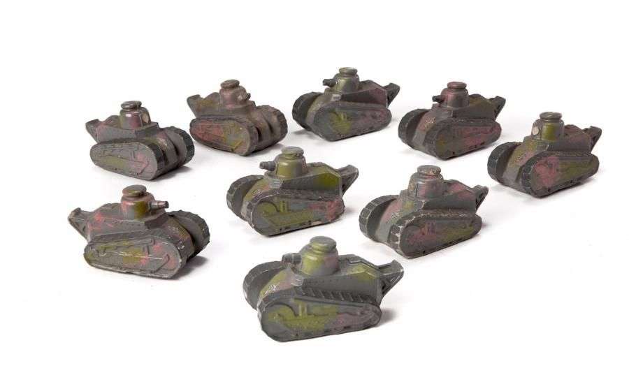 Tank RENAULT, L=8cm. roulements sur galets, peinture camouflage (9 exemplaires)