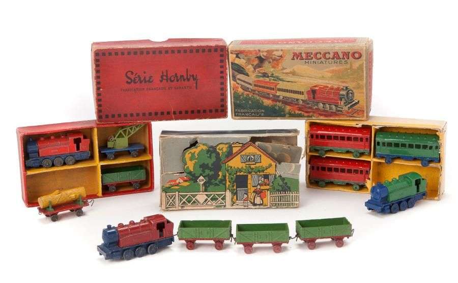 Trois boites de trains marchandises (x 2) et train voyageurs, réf. 18 -20 - 21.