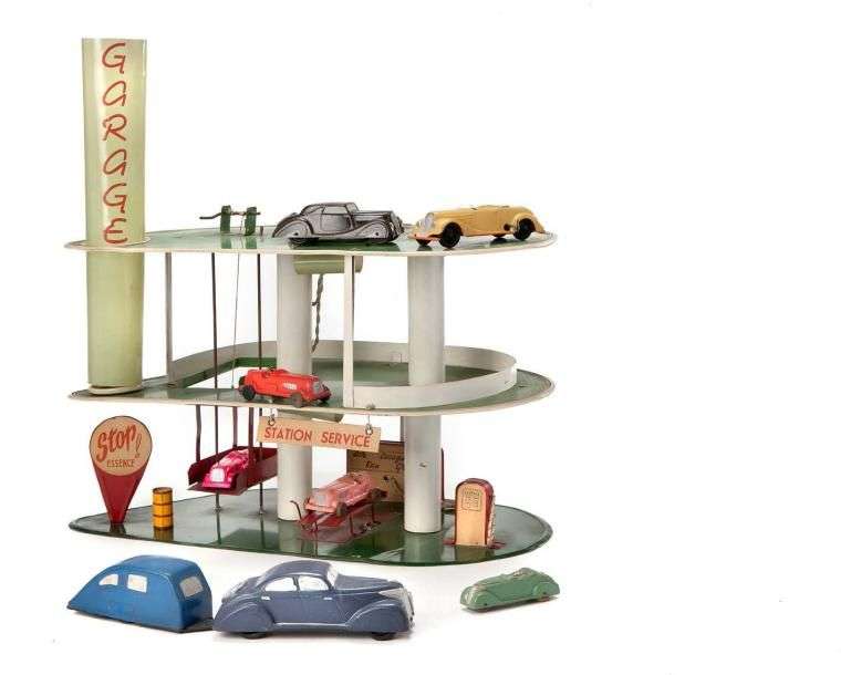 GARAGE STATION-SERVICE - 1960 avec ascenseur à voitures et 6 voitures en c