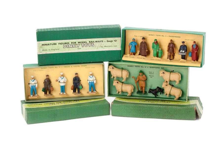 Trois boites de MINIATURE FIGURES FOR MODEL RAILWAYS «O» - PASSENGERS n° 3 - TRAIN et HOTEL STAFF n° 5