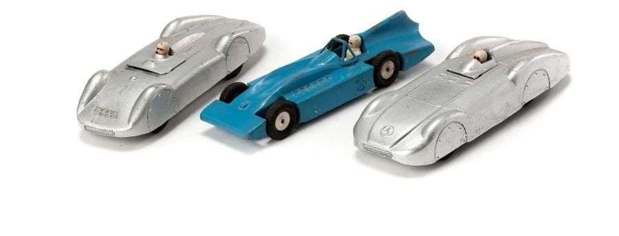 Trois bolides de course dont MERCEDES (x 2) et AUDI, réf. 15 -16, L=14cm.