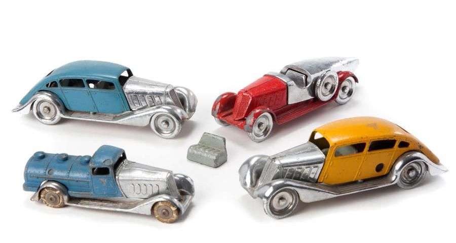 Quatre véhicules à transformation sans moteur, de type 140 et 100, dont Pointe de Course - Berline Grand Sport et Camion-citerne.