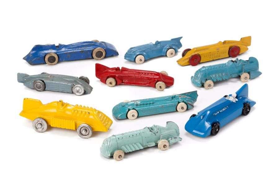 Dix voitures des Records en plomb (8) et fonte (2) figurant SILVER BULLET - GOLDEN ARROW.