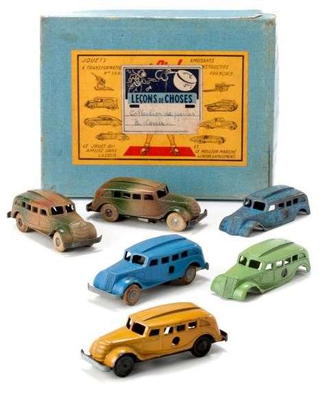 Quatre véhicules motorisés, type autocar avec 2 carrosseries seules de véhicules analogues.