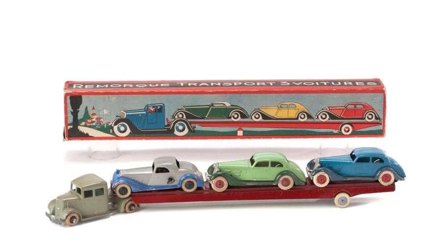 Tracteur PANHARD avec chargement de 3 voitures sur semi plateau.