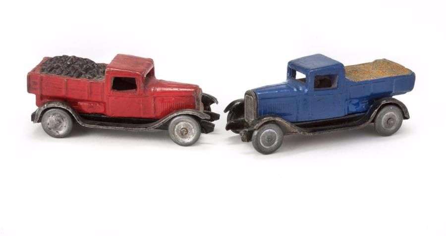 - Camion benne, transport de sable, rouge et noir.