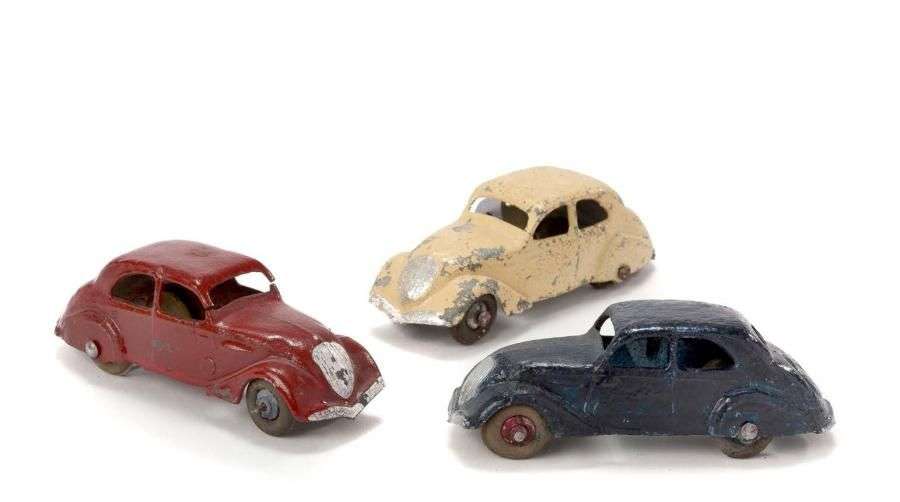 Berlines (qq. casses) rouge - jaune - bleu marine (3 exemplaires).