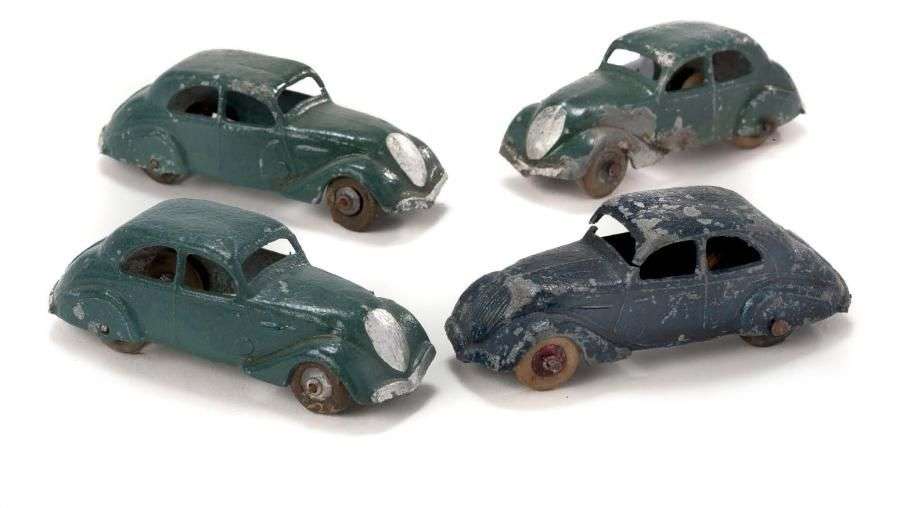 Aluminium: PEUGEOT 202 - 1937 Berlines (qq. casses) bleu marine - bleu vert