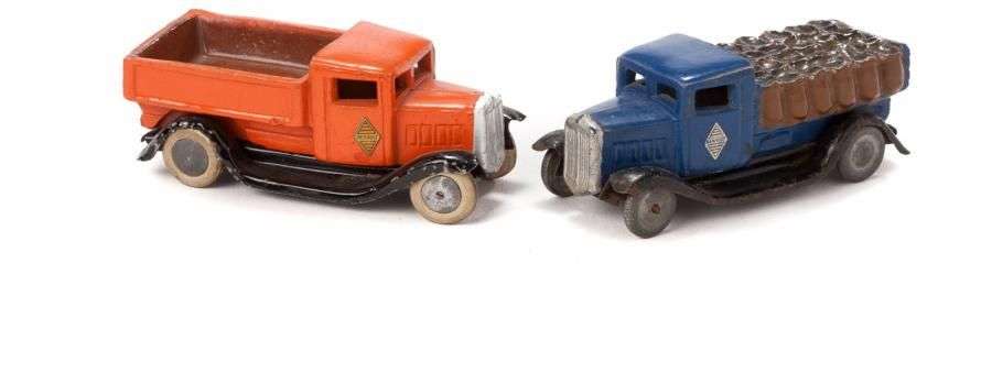- Camion RENAULT charbonnier, roues métal, bleu marine, châssis noir, L=9cm.