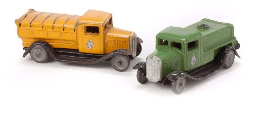 - Camion RENAULT benne, roues métal, jaune, châssis noir, L=9cm.