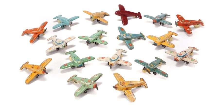 Dix-sept avions AIR France, monomoteur en acier embouti, trois roues métal (manque 6 hélices).