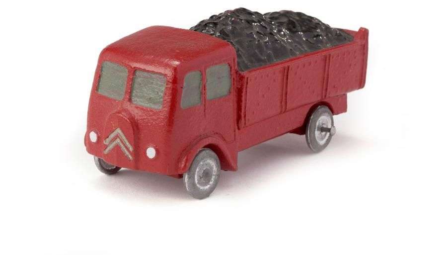 Camion CITROEN T.U.B. charbonnier, rouge, roues métal, L=10cm.
