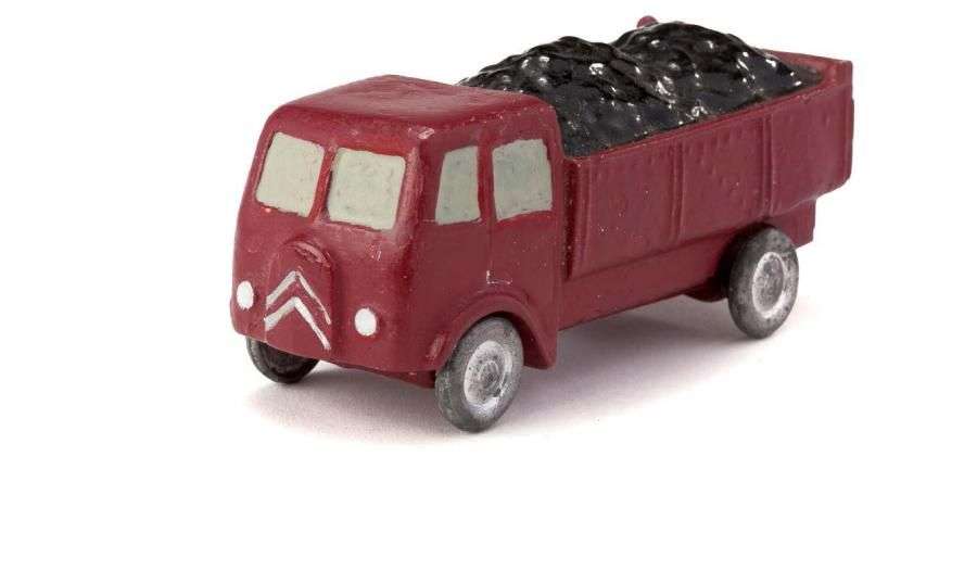 Camion CITROEN T.U.B. charbonnier, rouge, roues métal, L=10cm.