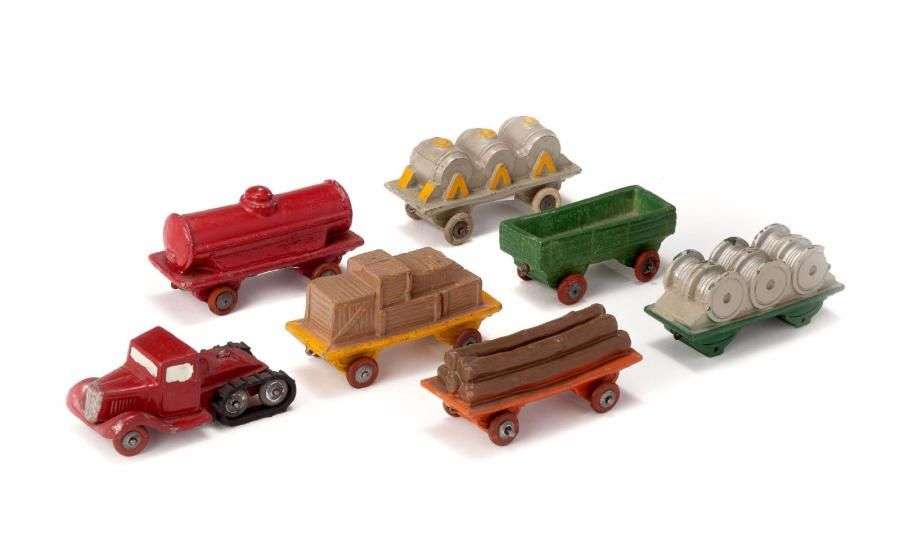 Tracteur chenille avec 6 remorques assorties, réf. 641/C (manque 2 essieux)