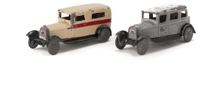- Fourgonnette ambulance DELAHAYE, crème, bande rouge, roues métal (repeints).