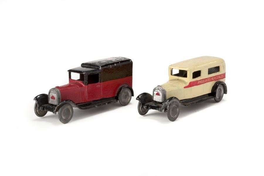 - Fourgonnette ambulance DELAHAYE «AMBULANCES MUNICIPALES» (manque fanion) jaune, bande rouge, châssis noir, roues métal.