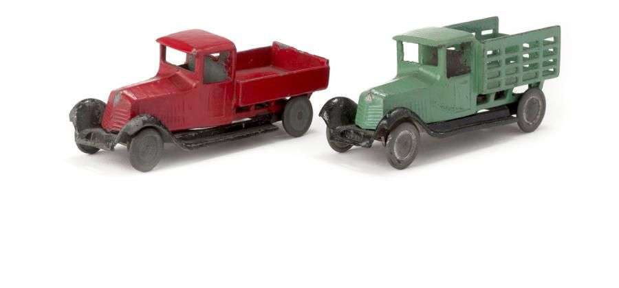 - Camion benne, roues métal, sans ailes AR, rouge, châssis noir.