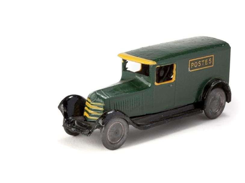 Fourgonnette RENAULT, roues métal, verte, fronton du toit peint en jaune.