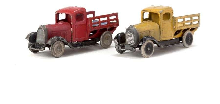 - Camion à ridelles B 14 G, roues métal, jaune, châssis noir.