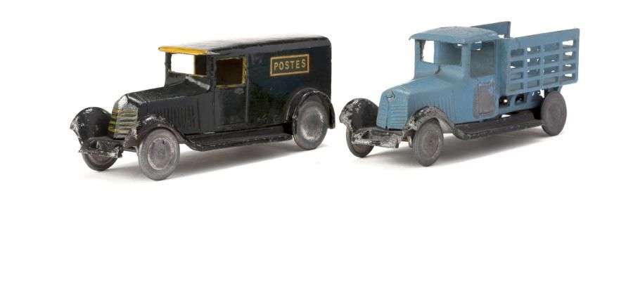 - Fourgonnette «POSTES» roues métal, noire et fronton du toit jaune.