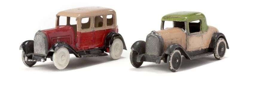 - Faux Cabriolet B14 G, roues métal, beige et vert, châssis noir.